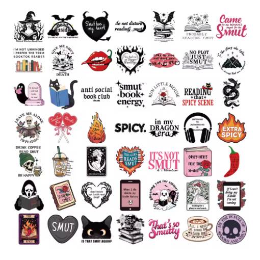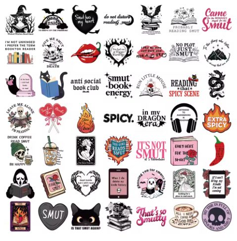 Originálna sada 50 samolepkov s KindleSmutty motívmi, ktoré dodajú tvojim veciam jedinečný vzhľad. Samolepky sú vyrobené z odolného PVC, sú vodotesné a ľahko sa lepia aj odlepujú bez zanechania stopy.