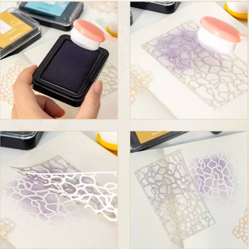• Koláže a mixed-media — vrstvenie s inými papiermi, na háttér naneste inkousty, patiny či razítka.