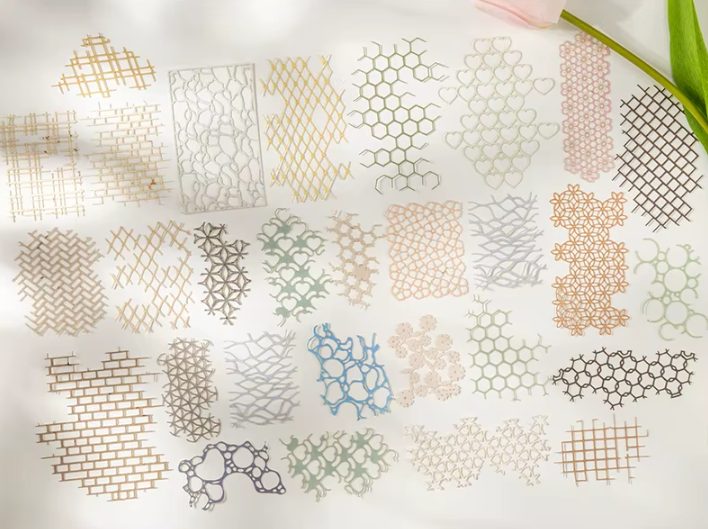 Dekorácie (tagy, visačky, obaly) — vystrehujte tvary, vrstvy rôznych vzorov.