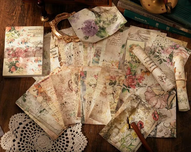 Priveďte do svojich projektov krásu kvetinovej elegance s týmto balíčkom 100 dekoratívnych papierov s jemným vintage motívom. Tieto listy sú pohodlne popisovateľné, ideálne ako pozadie do diárů, pre scrapbooking, dekorácie či výrobu prianí.