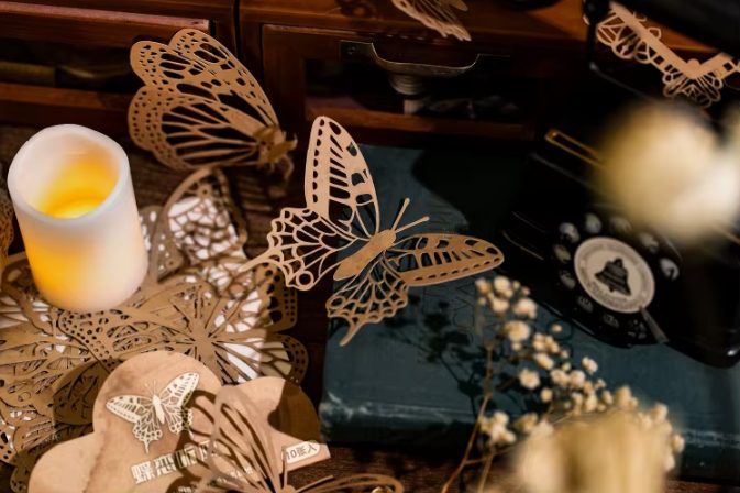 Vďaka detailnému spracovaniu s motýľmi a kvetinovými vzormi sa stanú krásnym doplnkom každej stránky, priania alebo albumu. Papier je ľahký, ľahko sa lepí a môžete ho kombinovať s ďalšími ozdobnými prvkami.