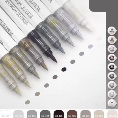 Balíček obsahuje jednu sadu deviatich akrylových štetcových fixov.