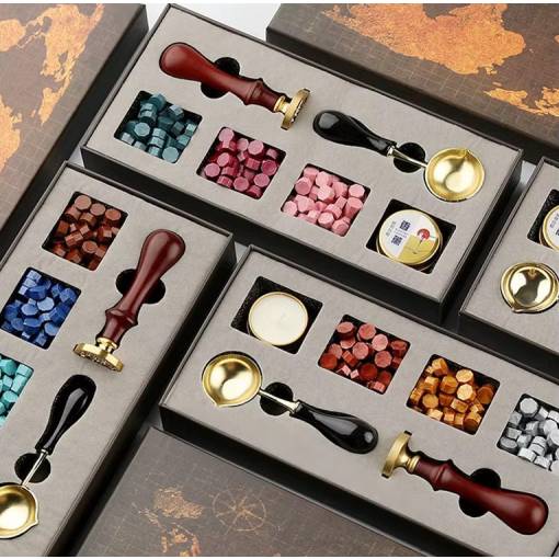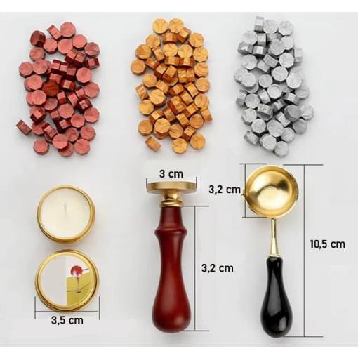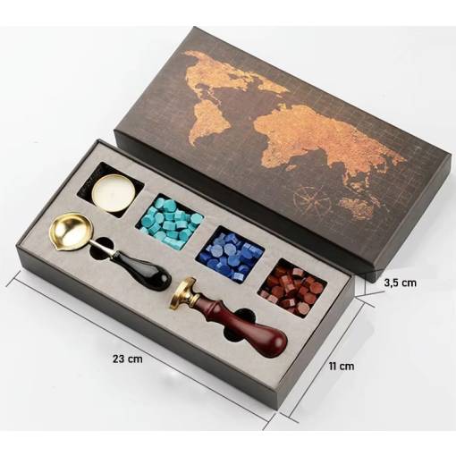 V krásnej krabičke nájdeš kompletnú výbavu na tvorbu pečatí – od kovového razítka s odnímateľnou hlavicou až po lyžičku na roztavenie vosku, pečatné korálky a vonné sviečky. Vďaka tomu môžeš začať tvoriť hneď po rozbalení.