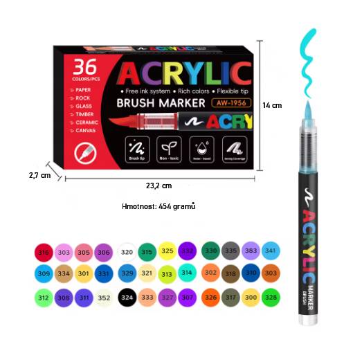 Balíček obsahuje jedno balení s 36 kusy barev.