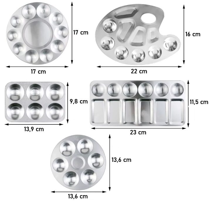 Kovová paleta je ideálnym pomocníkom pre všetkých maliarov a kreatívcov. Je vyrobená z kvalitného hliníka, vďaka čomu je odolná, ľahká a ľahko sa čistí. Hodí sa pre akvarel, kvaš, akryl, maľovanie na telo, nechty alebo iné kreatívne projekty.
