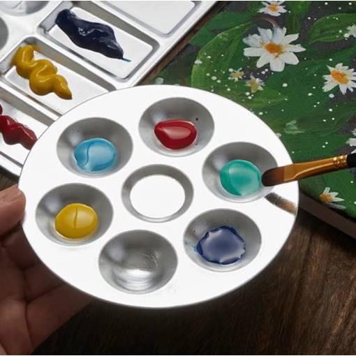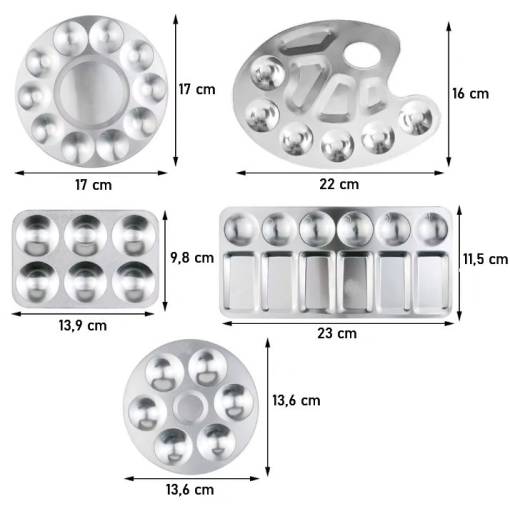 Kovová paleta je ideálnym pomocníkom pre všetkých maliarov a kreatívcov. Je vyrobená z kvalitného hliníka, vďaka čomu je odolná, ľahká a ľahko sa čistí. Hodí sa pre akvarel, kvaš, akryl, maľovanie na telo, nechty alebo iné kreatívne projekty.