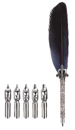 Objavte kúzlo starej Európy a eleganciu ručného písania s touto luxusnou darčekovou súpravou. Štýlové kaligrafické pero s pravým vtáčím hrotem kombinuje klasický dizajn s kvalitným kovovým spracovaním, vďaka čomu sa stáva nielen praktickým nástrojom, ale aj krásnou ozdobou vášho písacieho stolu.