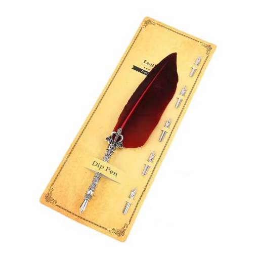 Objavte kúzlo starej Európy a eleganciu ručného písania s touto luxusnou darčekovou súpravou. Štýlové kaligrafické pero s pravým vtáčím hrotem kombinuje klasický dizajn s kvalitným kovovým spracovaním, vďaka čomu sa stáva nielen praktickým nástrojom, ale aj krásnou ozdobou vášho písacieho stolu.