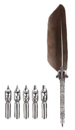 Objavte kúzlo starej Európy a eleganciu ručného písania s touto luxusnou darčekovou sadou. Štýlové kaligrafické pero s pravým vtáčím brkom kombinuje klasický dizajn s kvalitným kovovým spracovaním, vďaka čomu sa stáva nielen praktickým nástrojom, ale aj krásnou ozdobou vášho písacieho stola.