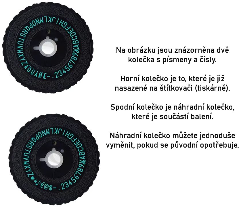 - 1x náhradné kolečko so znakmi