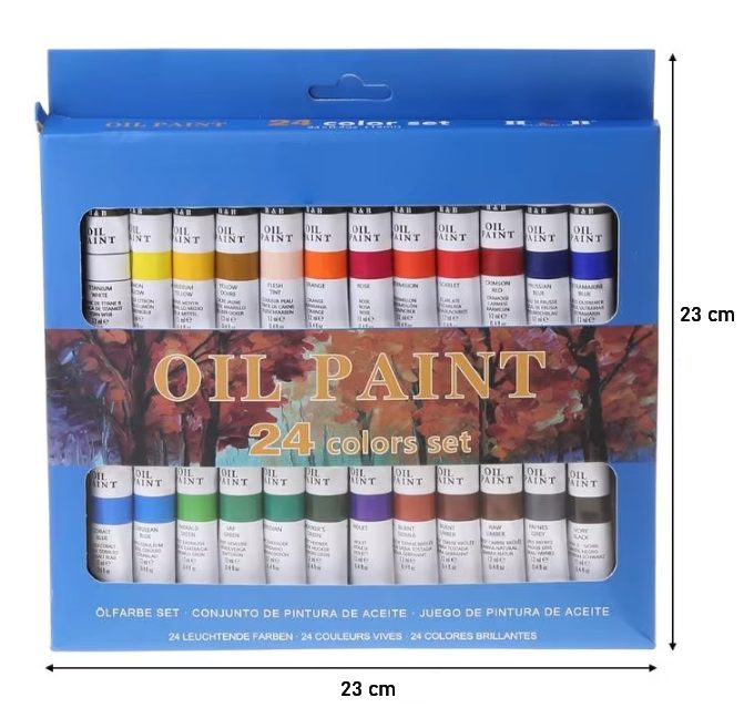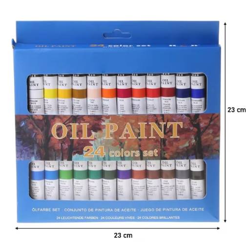 Sada 24 olejových farieb v tubách po 12 ml je ideálna pre začiatočníkov aj pokročilých, ktorí chcú rozšíriť svoju maliarsku výbavu je vhodná tiež pre použitie v scrapbooking, dekoračných projektoch či tvorbe vlastných umeleckých diel.