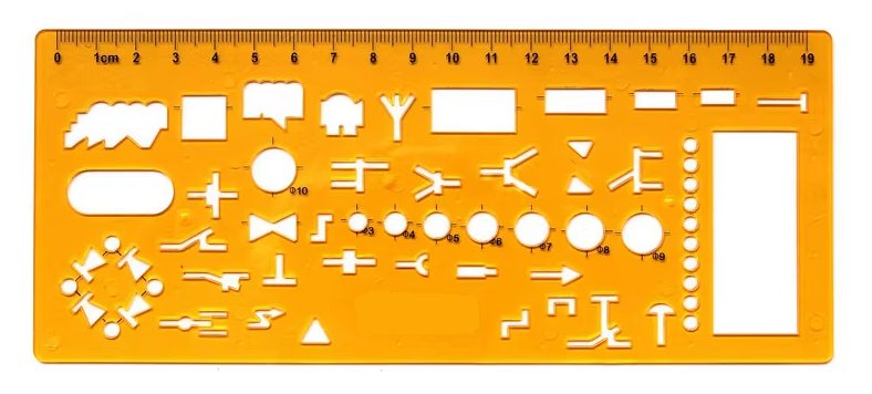 - Kombinuje funkciu pravítka a kresliacej šablóny.