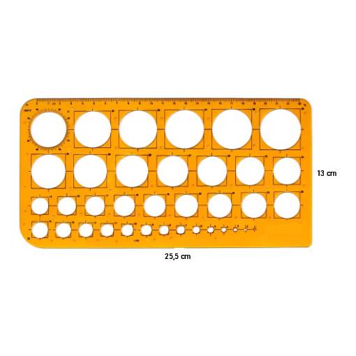 Umožňuje presné rysovanie kruhových a oválnych tvarov v rôznych veľkostiach a zároveň slúži ako klasické pravítko.