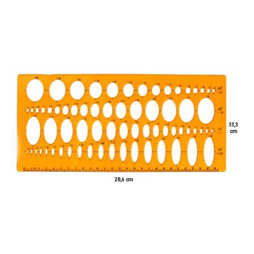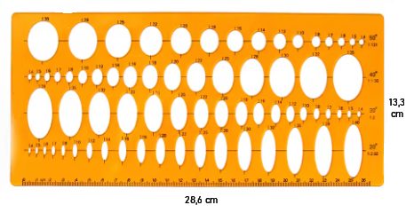 Umožňuje presné rýsovanie kruhových a oválnych tvarov v rôznych veľkostiach a zároveň slúži ako klasické pravítko.