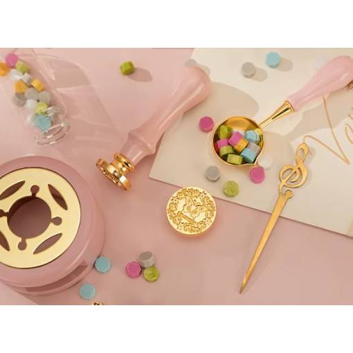 Roztavený vosk môžete nalievať na papier, obálku či iný povrch a vytvoriť tak krásnu pečať pomocou priloženého razítka. Perfektné pre scrapbooking, dekoratívne remeslá, tvorbu darčekov alebo originálnych oznámení.