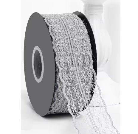 Táto krásna široká krajka z nylonu je ideálna pre všetky vaše kreatívne projekty. Jemný, pružný materiál a elegantný kvetinový vzor dodajú každému projektu profesionálny a sofistikovaný vzhľad.