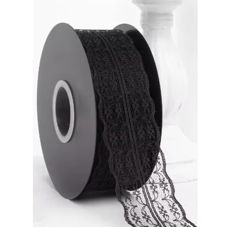 Scrapbooking široká krajka - čierna, 45 metrov