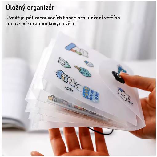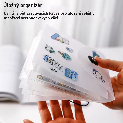 - Organizácia výrezov, drobných papiere, journalingových kartičiek a tagov.