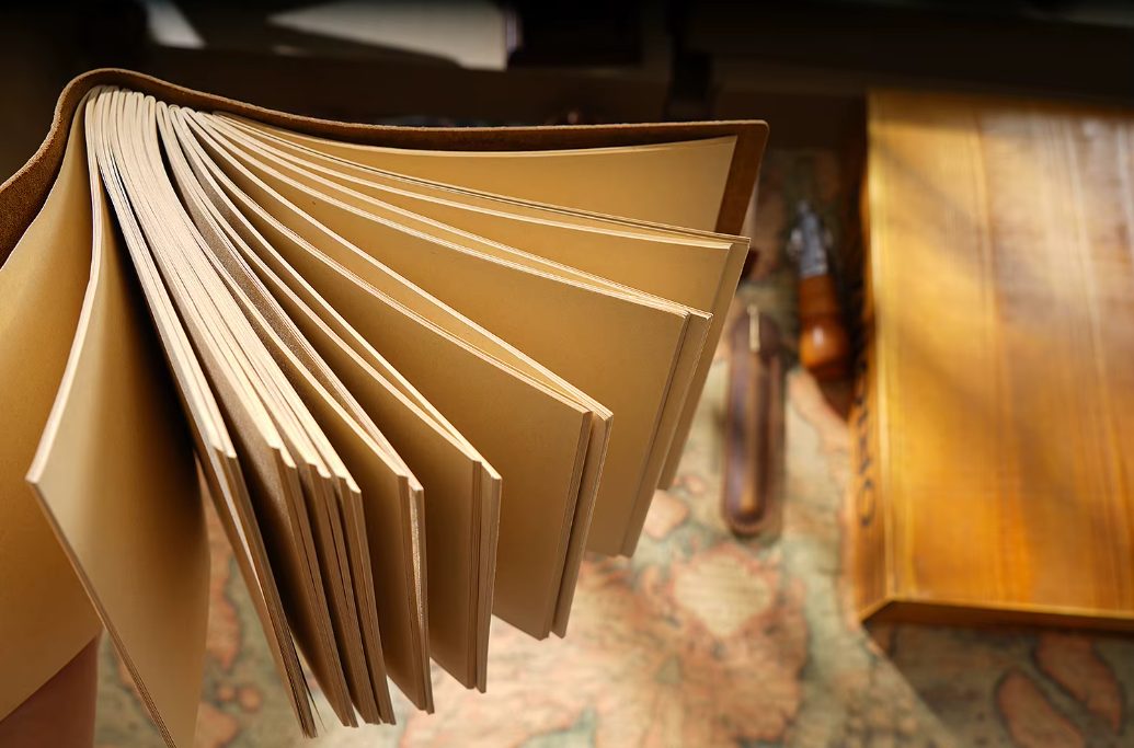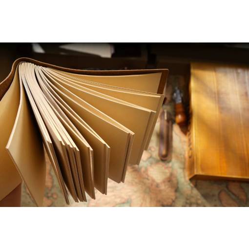 Elegantná hnedá koža dodáva zápisníku nadčasový vzhľad a činí ho skvelým darčekom pre priateľov alebo rodinu.