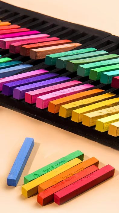 - Pastelové kriedy môžu ušpiniť ruky a pracovnú plochu – odporúčame používať podložku a umyť si ruky po práci.</li>