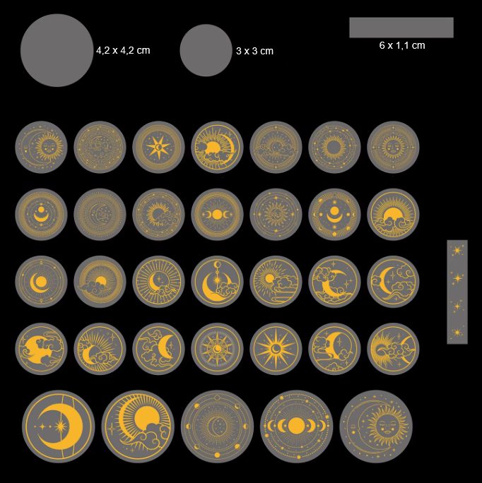 Perfektne sa hodí pre zdobenie denníkov, plánovania, brožúr, fotoalbumov a ďalších kreatívnych projektov, kde chcete dodať nádych magie a hviezdneho lesku.