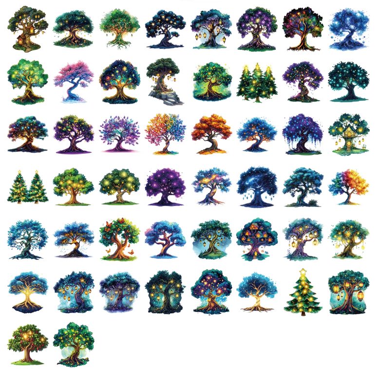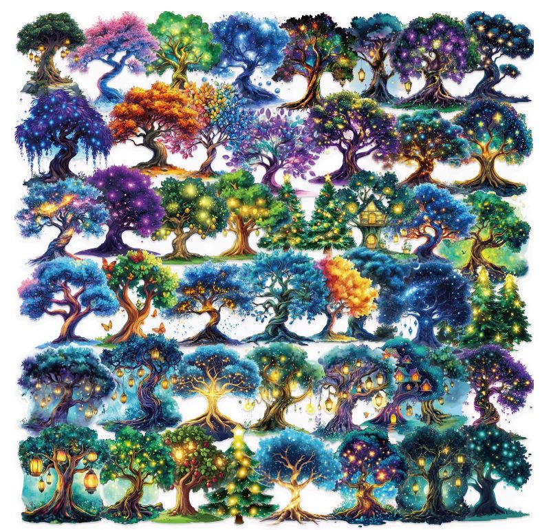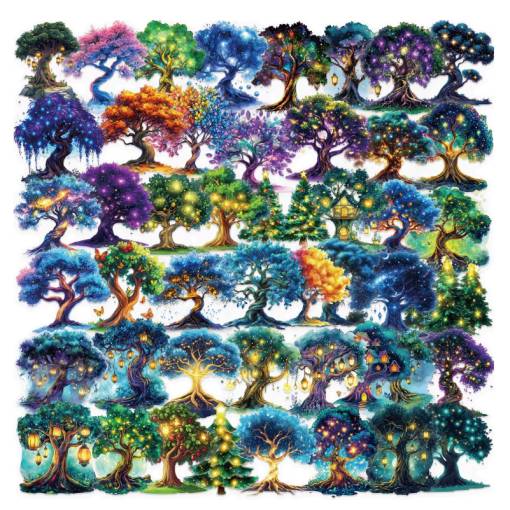 Vnesite do svojich kreatívnych projektov špetku mágie. Sada 50 samolepik s motívom kresleného čarovného stromu očarí jemnými detailmi a rozprávkovou atmosférou.
